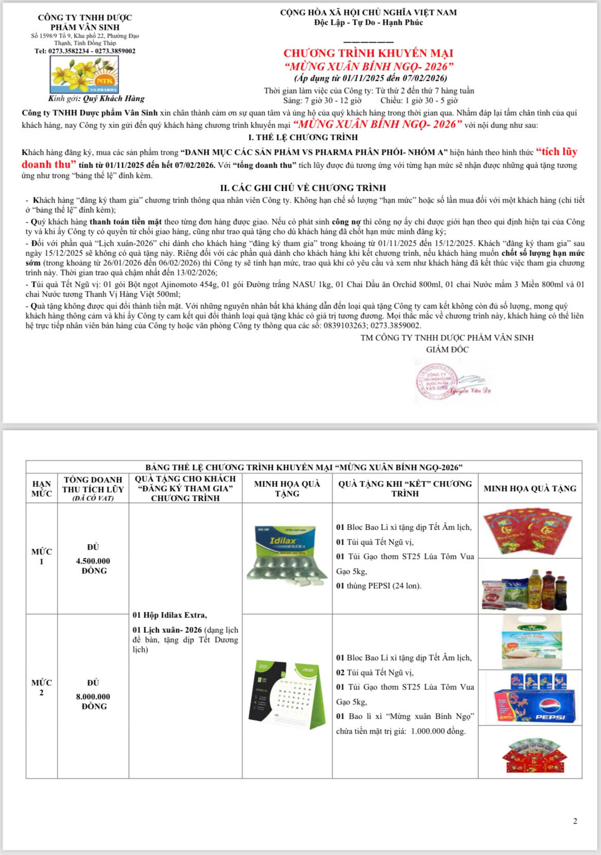 CÔNG TY TNHH DƯỢC PHẨM VÂN SINH TỔ CHỨC CHƯƠNG TRÌNH KHUYẾN MẠI - TIỆC "CÙNG VÂN SINH NGHÊNH ĐÓN THẦN TÀI"