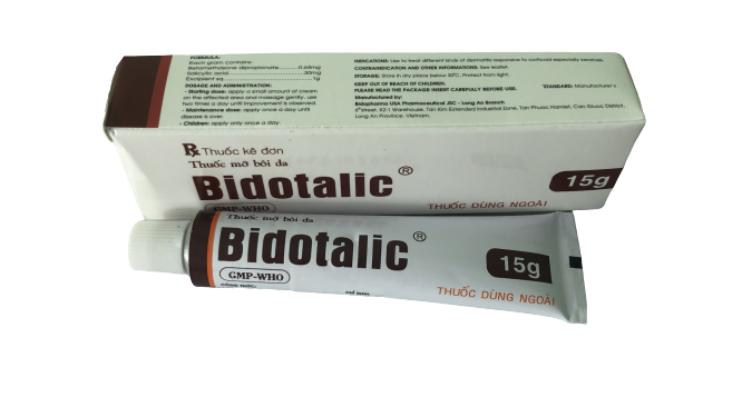 Thuốc Bidotalic 15g được dùng trong điều trị các bệnh da liễu có đáp ứng với Corticoid và có các dấu hiệu tróc vảy, dày sừng như Lichen hóa, viêm da bài tiết bã nhờn ở da đầu, viêm da dị ứng kinh niên, vảy nến, eczema, á sừng.