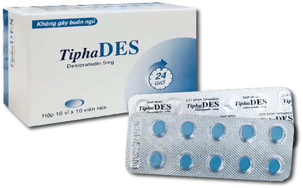 Thuốc Tiphades 5 mg có thành phần chính là Desloratadin 5mg. Desloratadin là thuốc kháng histamin thế hệ II chống dị ứng, mày đay và giảm ngứa.